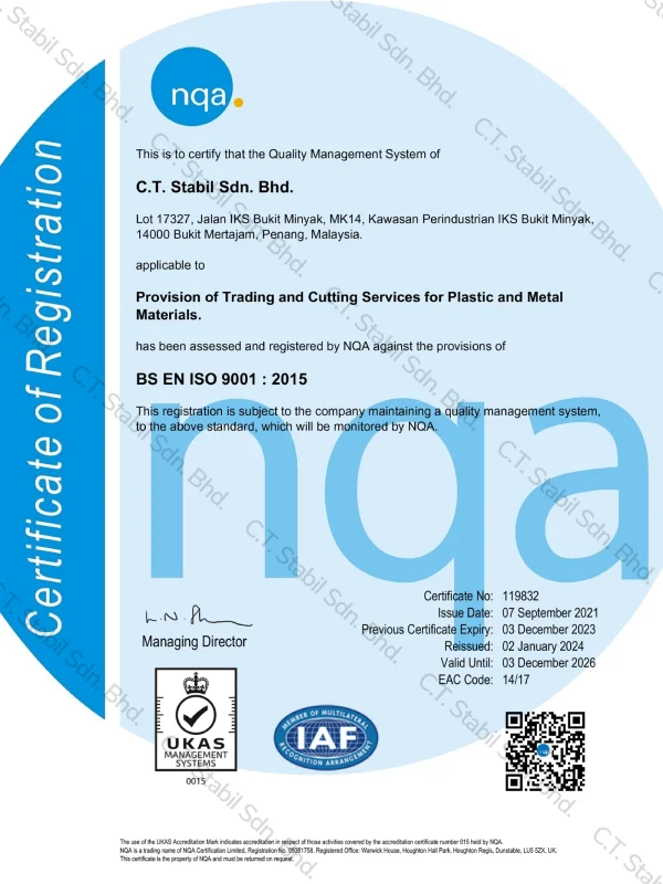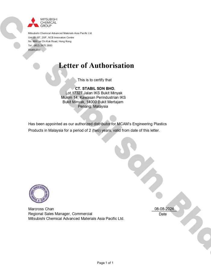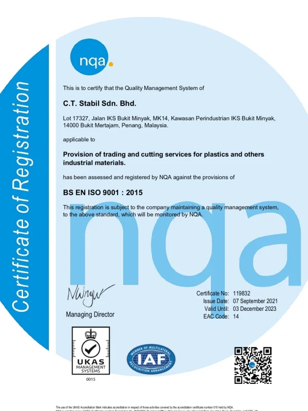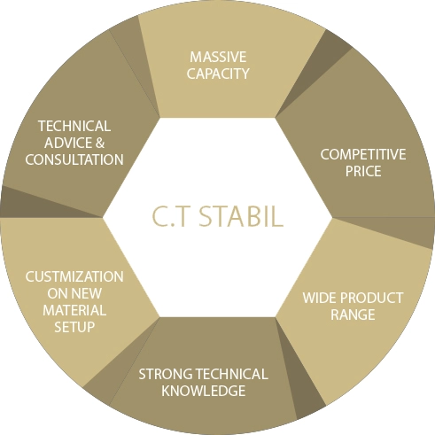 In the early 90’s, C.T. Stabil Sdn. Bhd. was incorporated as an absolute plastic related product retailer. At the beginning age of industry era, engineering plastic is one of the precious materials among commodity as the market under development. Our company grows respectively as the industry yet maturely to be grown.